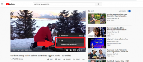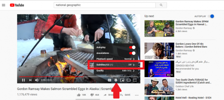 اول روی چرخ دنده کلیک میکنیم و منویی باز میشه که برای فعال کردن بر روی subtitiles/cc باید کلیک کنیم.
